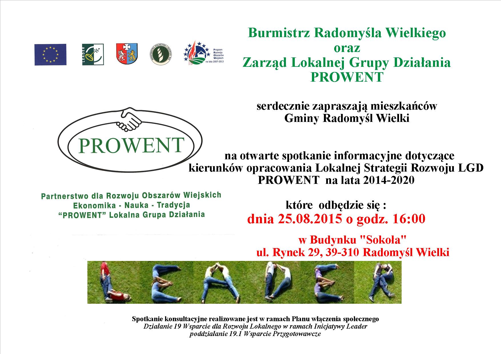 Zapraszamy mieszkańców Gminy Radomyśl Wielki na otwarte spotkanie informacyjne dotyczące kierunków opracowania Lokalnej Strategii Rozwoju LGD PROWENT na lata 2014-2020.