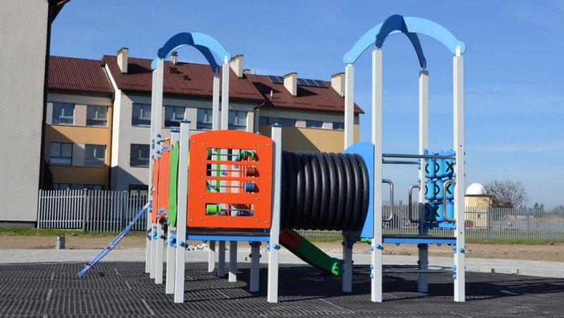 Przy Szkole Podstawowej w Radomyślu Wielkim (ul. Klonowa) powstał nowoczesny plac zabaw, zawierający blisko 20 urządzeń. Do dyspozycji dzieci jest zestaw wielofunkcyjny ze zjeżdżalnią, statek ze zjeżdżalnią, zjazd linowy tzw. tyrolka, tor przeszkód, ścieżka zdrowia, zestaw piaskowy, zestaw kuchenny, baza wiklinowa w postaci szałasu, tablica edukacyjna „kółko-krzyżyk”, piaskownica z palisady, bujaki sprężynowe, huśtawka ptasie gniazdo i huśtawka podwójna. Nie zabrakło elementów małej architektury w postaci ławeczek i koszy na odpady. Projekt uwzględniał usuwanie barier architektonicznych - dostęp do terenu objętego inwestycją odbywa się bezpośrednio z przyległej drogi i chodnika.