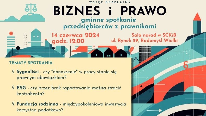 - Przybliżymy przedsiębiorcom najbardziej aktualne kwestie prawne, takie jak nadchodzące regulacje dotyczące ochrony sygnalistów, obowiązki związane z tzw. ESG oraz zagadnienia dotyczące sukcesji w "firmach" z naciskiem na instytucję fundacji rodzinnej. Przewidujemy także czas na wolną dyskusję z zakresu prawno-podatkowego, na końcu spotkania - zachęcają do udziału w spotkaniu radcowie prawni z Kancelarii KHM dr Edyta Kozak-Hamala Olaf Maciejowski.