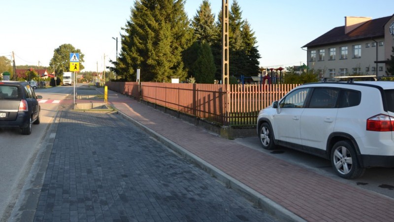 Zadanie zostało wykoanane w ramach poprawy bezpieczeństwa ruchu drogowego. Zakres przebudowy drogi gminnej nr 103577R obejmował roboty rozbiórkowe istniejącej infrastruktury, roboty odwodnieniowe polegających na położeniu rur PP fi 400, miejscowe przykrycie przydrożnego rowu, wykonaniu podbudowy oraz roboty brukarskie. Dzięki tym pracom powstały zatoki postojowe na 10 samochodów.