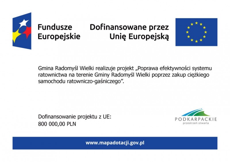 Gmina w partnerstwie z radomyską OSP złożyła wniosek na to zadanie do programu regionalnego Fundusze Europejskie dla Podkarpacia 2021-2027 dla projektów dotyczących rozwijania systemów ratownictwa w ramach działania „Adaptacja do zmian klimatu”.