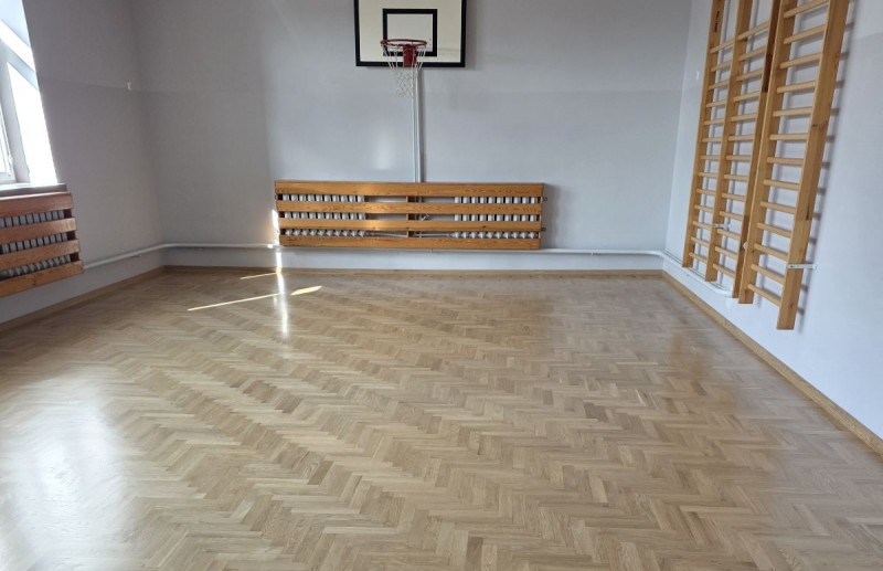Magistrat przeprowadził podczas wakacji remont w szkole Janowcu. W ramach zaplanowanych robót wykonano cyklinowanie parkietu i wymianę listew przypodłogowych na sali gimnastycznej.
