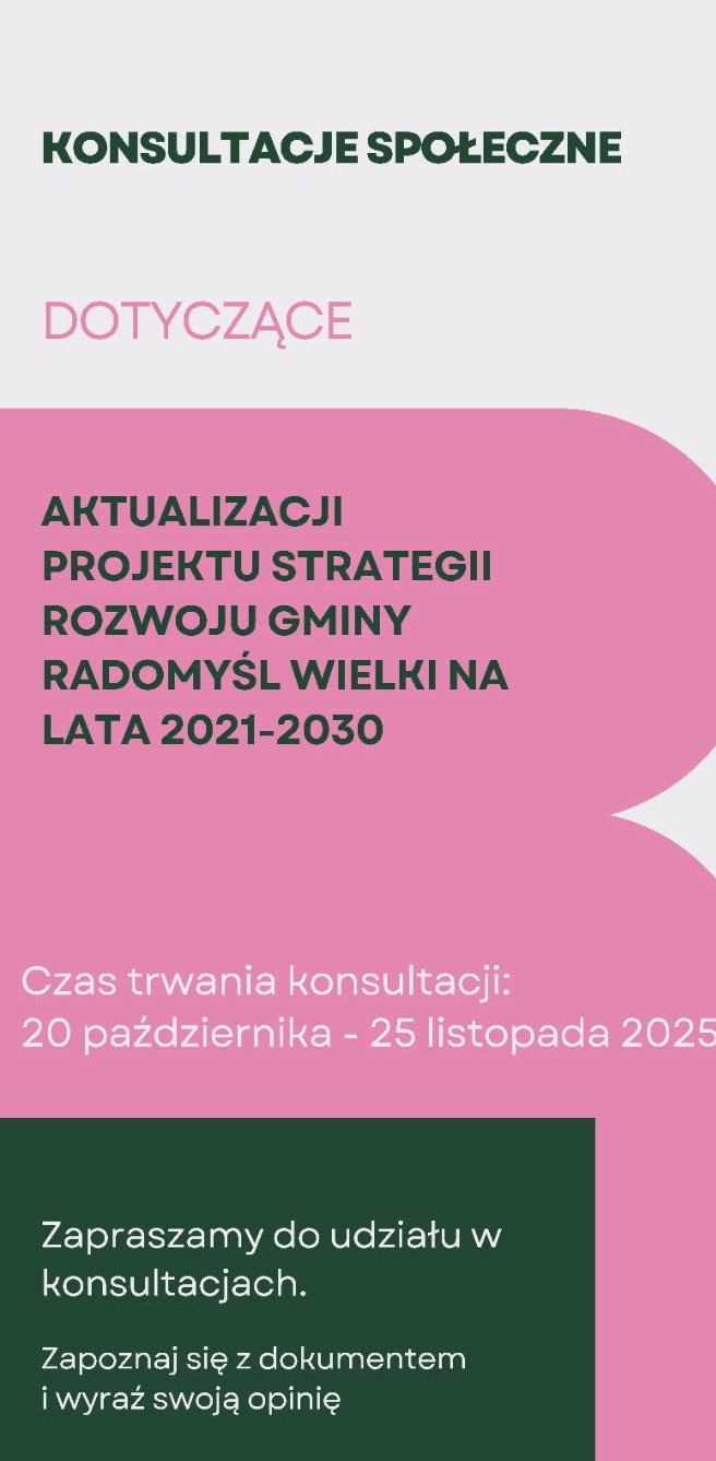 Aktualizacja projektu Strategii Rozwoju Gminy Radomyśl Wielki na lata 2021-2030 wraz z formularzem konsultacyjnym dostępny jest: