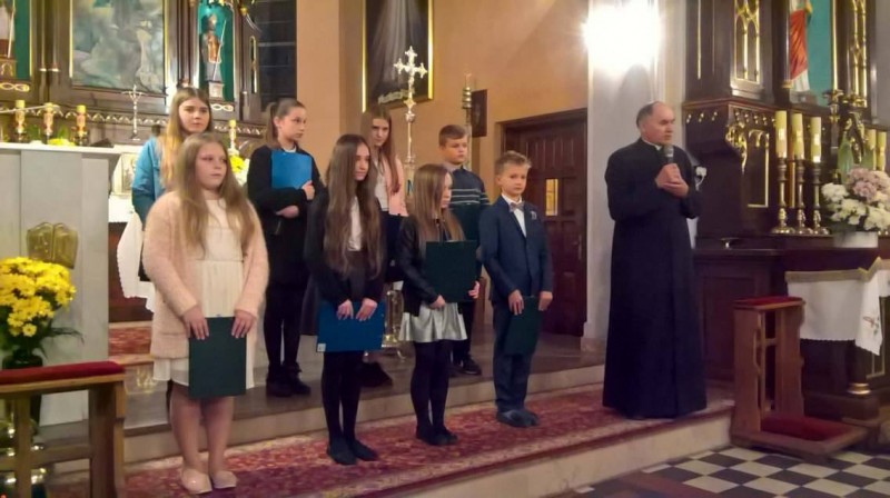 Swój program artystyczny przedstawili w kościele parafialnym, przed licznie zebraną publicznością. Występ poprzedziła Msza Święta i modlitwa różańcowa z rozważaniami, poprowadzona przez dziewczynki z klasy VI. „Ukochany Ojcze Święty ofiarujemy Ci miłość i pamięć. Niech nasze słowa i pieśń popłyną do Ciebie, do domu Ojca!”. Tak mówili młodzi artyści i popłynęły piękne słowa, wiersze, pieśni, wspomnienia o szczególnym człowieku, papieżu – Polaku. I dziś młodzież pamięta słowa, które do nich kierował Ojciec Święty „Wy jesteście nadzieją Kościoła i świata – wy jesteście moją nadzieją!”. Choć już tyle lat minęło, postać Jana Pawła II nadal jest wzorem i autorytetem dla całych rzesz chrześcijan. Jego nauczanie nie traci swej aktualności. Na zawsze pozostanie w naszej pamięci.