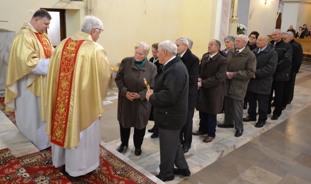 Podczas nabożeństwa małżonkowie odnowili ślubne przyrzeczenia oraz otrzymali pamiątkowe jubileuszowe krzyże.