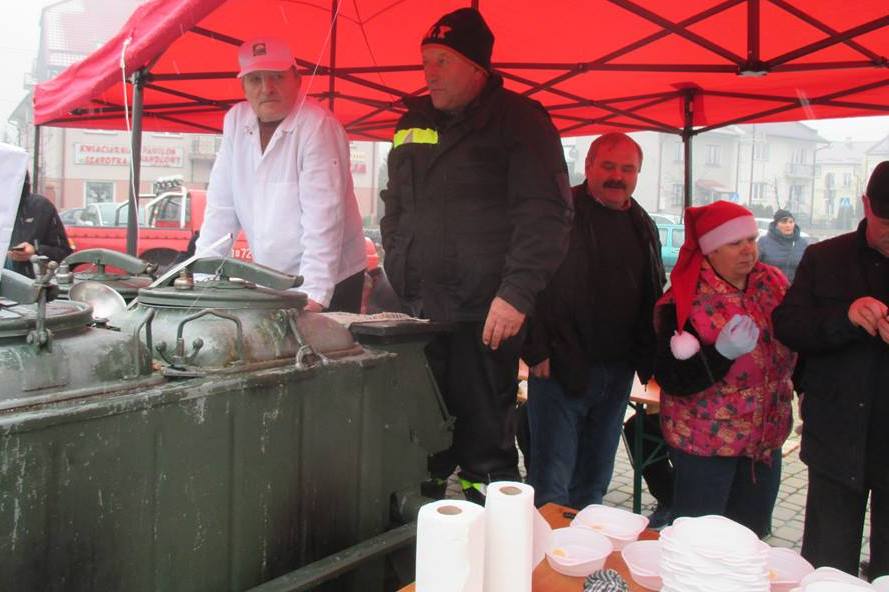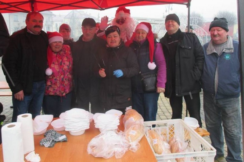 W sobotnie przedpołudnie pomimo niekorzystnej aury na radomyskim Rynku na mieszkańców gminy czekał Święty Mikołaj. Miał dla nich nie tylko słodkości, ale przede wszystkim częstował pysznym i pożywnym barszczem z jajkami i kiełbaskami.