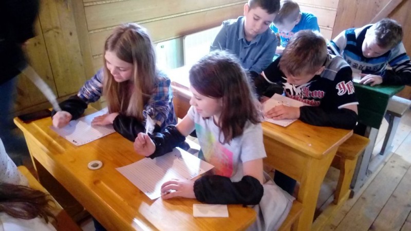 Uczestnicy warsztatów zostali wprowadzeni w tematykę szkolnictwa w Polsce z przełomu XIX i XX wieku poprzez obejrzenie prezentacji multimedialnej oraz zdjęć z tego okresu. W gab inecie trzykrotnego premiera Wincentego Witosa zobaczyli rękopisy. Prowadząca wyjaśniła czym była kaligrafia i kałamarz, do czego służyło gęsie pióro i lipowy patyczek. Uczestnicy zasiedli w starych, drewnianych ławkach, aby poczuć klimat szkoły sprzed 100 lat. Każdy miał okazję spróbować samodzielnego pisania gęsim piórem, stosując zasady kaligrafiioraz wykonać ozdobną okładkę pamiętnika wykorzystując technikę kolażu. Zajęcia zakończyły się wspólnym rozwiązywaniem rebusów i zgadywanek oraz porównaniem szkoły dawniej i dziś.