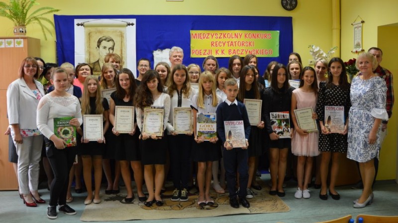 Wśród gimnazjalistów na najwyższym stopniu podium znalazła się Oliwia Studniarz. Druga była Daria Falarz, a trzecie miejsce zajęły – Barbara Cichoń i Patrycja Cierpik. Dyrektorka szkoły wręczyła nagrody i dyplomy uczniom oraz podziękowania dla nauczycieli za trud włożony w przygotowanie uczniów. Koordynatorkami konkursu były nauczycielki Jolanta Palion i Halina Kosińska.
