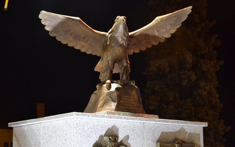 Odzyskanie przez Polskę niepodległości było dla naszych przodków wydarzeniem doniosłym. Mieszkańcy odrodzonej po 123 latach niewoli (a w przypadku naszych ziem, nawet po 146 latach) Polski, pragnęli w godny sposób upamiętnić fakt, że Ojczyzna znowu jest wolna. W ciągu kolejnych lat w wielu miejscowościach powstawały kopce i pomniki wolności upamiętniające odzyskanie Niepodległości. Bardzo często ich postumenty były zwieńczone wzbijającymi się do lotu orłami, które symbolizowały zerwanie zaborczych kajdan, odzyskanie wolności i suwerenności. Nawiązując do naszych przodków, w stulecie odzyskania przez Polskę niepodległości również społeczność gminy Radomyśl Wielki zamanifestowała swoje przywiązanie do idei wolnej Ojczyzny. Symbolem tego jest orzeł wzbijający się do lotu, który zwieńczył pomnik na radomyskim rynku.