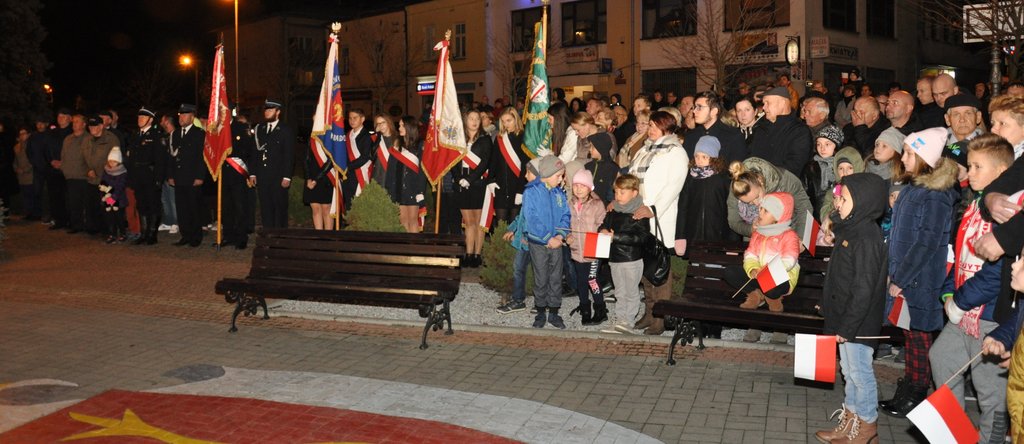 - Bardzo dziękuję wszystkim za obecność na dzisiejszych uroczystościach, zarówno w południe, jak i teraz tą wieczorową porą. Jest nas naprawdę ogromna rzesza. To budujące, bo pokazuje, że umiemy cieszyć się z wolności. Życzmy sobie i Polsce, by nadal tak pięknie się rozwijała, by była miejscem przyjaznym do życia. Dziś mamy uroczystość wieńczącą nasze gminne obchody roku jubileuszowego. Bardzo dziękuję wszystkim, którzy przyczynili się do zorganizowania tych wielu imprez i inicjatyw upamiętniających rok jubileuszu stulecia odzyskania niepodległości. Szczególnie dziękuję Andrzejowi Przybyszewskiemu i Krzysztofowi Babiarzowi, którzy byli motorem napędowym wielu tych przedsięwzięć – powiedział na zakończenie burmistrz Józef Rybiński.