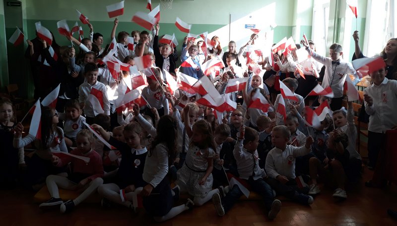 Szkoła wzięła również udział w ogólnopolskiej akcji „Rekord dla Niepodległej” i dokładnie o 11.11 odśpiewano wszystkie zwrotki Mazurka Dąbrowskiego. Było to szczególne śpiewanie, śpiewanie dla Niepodległej Ojczyzny. W czasie uroczystości wręczono każdemu uczniowi i pracownikowi szkoły flagę biało - czerwoną, która była nawiązaniem do wystawy: Symbole Narodowe Polski. Na koniec dyrektor Anna Cetnar wręczyła nagrody uczestnikom konkursu plastycznego: „Dla Niepodległej” oraz „Wielkiego testu o niepodległości”.