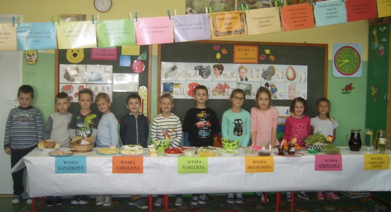 Powstały wyspy: kanapkowa, warzywna, owocowa, nabiałowa, przyprawowa oraz z napojami. Działania przebiegały sprawnie pod okiem nauczycielek: Katarzyny Madury, Grażyny Chmury, Małgorzaty Jeniec i Małgorzaty Krzystyniak. Uczniowie nie zapomnieli też o zaproszeniu gości – pani dyrektor, nauczycieli i kolegów ze starszych klas.
