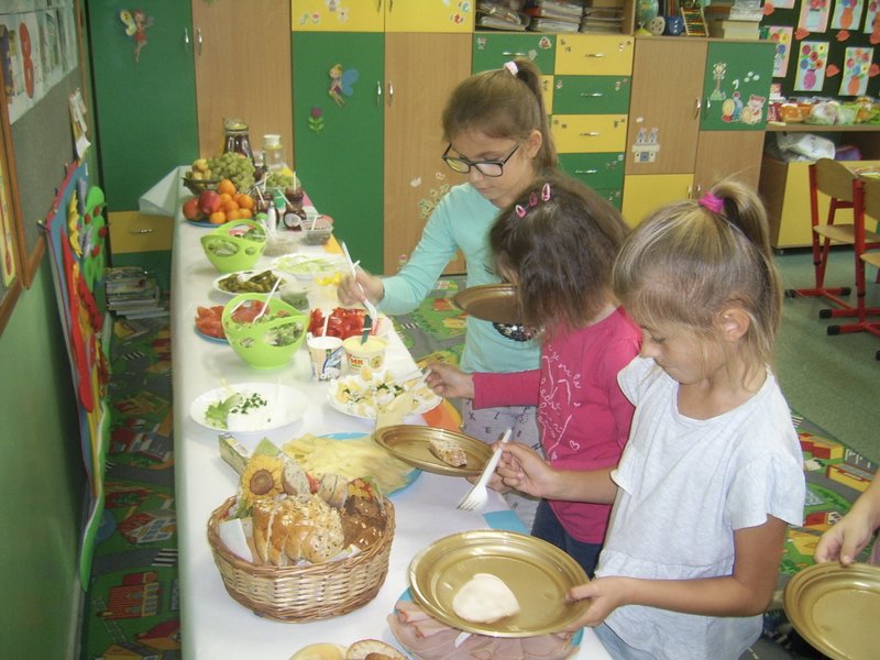 Przygotowania do niej trwały kilka dni: dzieci zostały zapoznane z zasadami zdrowego odżywiania, przeżywały przygody z bohaterami akcji czyli Tolą, Maksem i Wszystkojadem, przygotowały rysunki i plakaty, wspólnie z wychowawczyniami udekorowały sale oraz wyznaczyły zadania do wykonania w dniu spożywania posiłku. W czwartek od godziny 8.00 wszyscy podjęli aktywne działania, aby przygotować i zjeść najważniejszy posiłek dnia. Dzieciaki podzielone na zespoły - odpowiedzialne za przygotowanie sali i poszczególnych wysp śniadaniowych sprawnie wykonały przydzielone zadania.