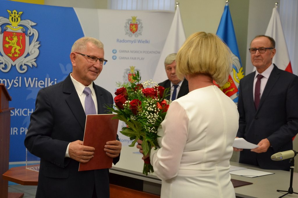 Po ukształtowaniu prezydium rady przyszedł czas na odebranie zaświadczenia o wyborze na Burmistrza Radomyśla Wielkiego przez Józefa Rybińskiego. Chwilę później złożył on uroczyste ślubowanie i tym samym oficjalnie już objął urząd na lata 2018-23. - Jeszcze raz serdecznie dziękuję mieszkańcom za wybór na stanowisko burmistrza – powiedział po ślubowaniu Józef Rybiński. - Burmistrz jest organem wykonawczym, a rada stanowiącym, uchwałodawczym. Jesteśmy więc zdani na współpracę ze sobą i realizację tych zobowiązań, które poczyniliśmy względem mieszkańców podczas kampanii. Życzę nam wszystkim dobrej wzajemnej współpracy i realizacji wielu zadań dla dobra naszej lokalnej wspólnoty. Radnym życzę także dobrych relacji z mieszkańcami – dodał.