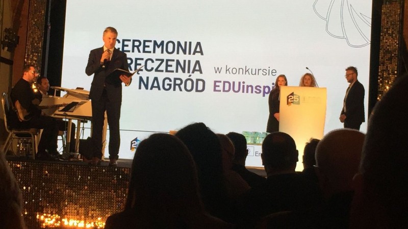 Radomyski Zespół Szkół, jako JEDYNA szkoła w województwie podkarpackim, znalazł się wśród pięciu szkół i instytucji z całej Polski nominowanych do tej prestiżowej nagrody. - Obecność w tym gronie, wśród wielu wspaniałych ludzi, którzy od lat z powodzeniem realizują niezwykle ciekawe oraz ważne inicjatywy, to dla nas olbrzymi sukces i wielki zaszczyt – przekazuje dyrektor Anna Brożyna. Wraz z Moniką Szocik - nauczycielką WOS-u i historii, reprezentowała ona szkołę podczas uroczystej gali wręczenia nagród edukacyjnych FRSE, która odbyła się 5 grudnia roku w Arkadach Kubickiego Zamku Królewskiego w Warszawie. Tegoroczne EDUinspiracje odbywały się pod hasłem „Podziel się sukcesem!”Jest to jedna z najważniejszych inicjatyw FRSE mająca na celu wyłonienie najbardziej wartościowych, zwłaszcza w zakresie upowszechniania i wykorzystywania rezultatów działań, projektów dofinansowywanych z programów zarządzanych przez Fundację.