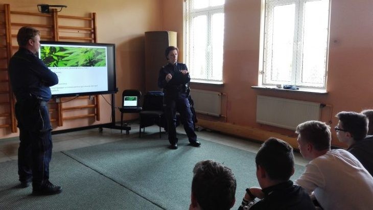 Tematem przewodnim były zagrożenia związane z zażywaniem substancji psychoaktywnych, a w szczególności dopalaczy. Przestrzegali przed sięganiem po tego typu niebezpieczne środki. W trakcie prowadzonych rozmów podawali przykłady młodych ludzi, którzy kierowani ciekawością, bądź chęcią przypodobania się towarzystwu, spróbowali dopalaczy, a w konsekwencji uzależnili się od nich, tracąc cenne zdrowie lub nawet życie.