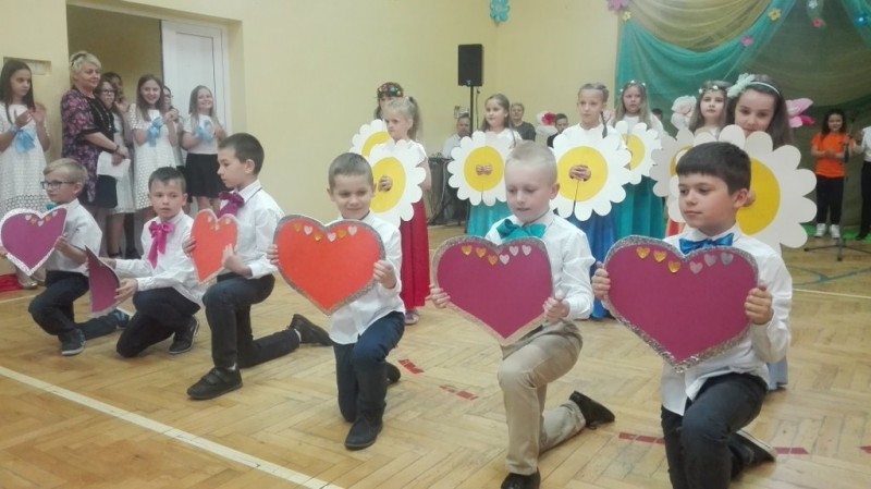Radosną część artystyczną przygotowali uczniowie szkoły pod kierunkiem pań wychowawczyń: Ewy Lubera, Alicji Cichoń, Bożeny Kujda i Marii Chmura. Uroczystość swą obecnością zaszczycili zaproszeni goście m.in. z-ca burmistrza Jarosław Godek, kochane mamy i tatusiowie z dziećmi oraz babcie.