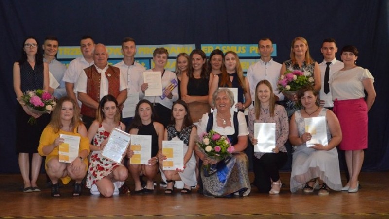 Przybyła na tę uroczystość dyrektor instytucji partnerskiej z Austrii, Aldona Biedermann, podsumowała w swoim wystąpieniu czteroletnią współpracę z radomyską szkołą, wysoko oceniła kompetencje oraz zaangażowanie młodzieży w realizowany projekt,
