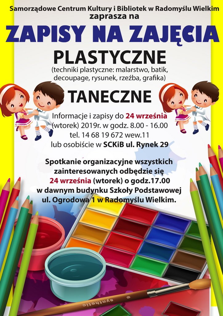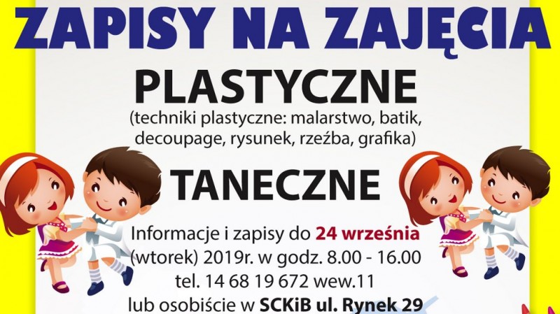 Zapisy potrwają do 24 września. Można zgłaszać się osobiście w siedzibie SCKiB na II piętrze (Rynek 29) lub telefonicznie 14 681 96 72 wew. 11 w godz. od 8.00 do 16.00. Spotkanie organizacyjne wszystkich zainteresowanych odbędzie się 24 września (wtorek) o godz. 17.00 w budynku byłej Szkoły Podstawowej w Radomyślu Wielkim (ul. Ogrodowa 1.)