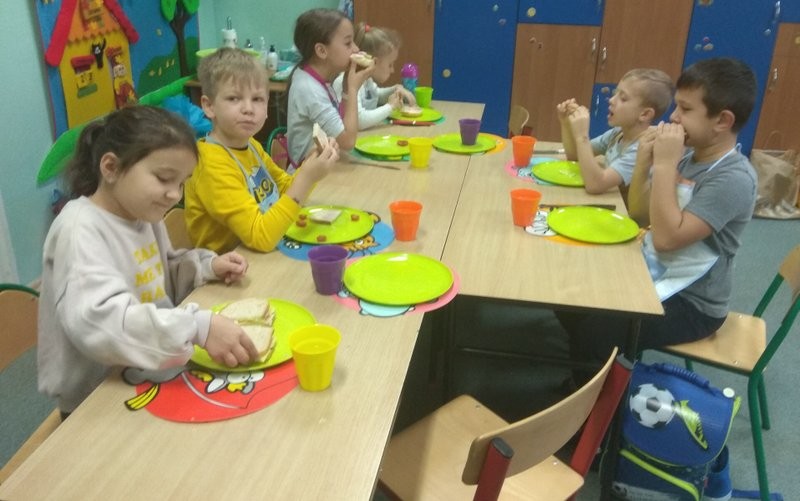 Nauczycielki edukacji wczesnoszkolnej – Małgorzata Krzystyniak, Grażyna Chmura i Małgorzata Jeniec wraz z uczniami klas I - III i ich rodzicami zorganizowały uroczyste, zdrowe śniadanie w swojej szkole. Już od godziny 8.00 wspólnie z wychowankami podjęły aktywne działania aby przygotować i zjeść najważniejszy posiłek dnia. Dzieciaki zostały podzielone na grupy odpowiedzialne za przygotowanie poszczególnych elementów śniadania.