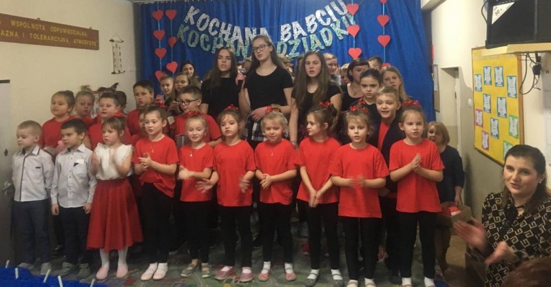 Na dobry początek dziadkowie zostali przywitani przez najmłodszych piosenką z wykorzystaniem instrumentów muzycznych. Następnie uczniowie klasy III mogli wystąpić przed dziadkami w satyrycznym skeczu o Czerwonym Kapturku. Ponownie przedszkolaki pojawili się na scenie śpiewając i tańcząc w przedstawieniu „Jak za dawnych lat”. Uczniowie klasy III za pomocą lornetek „podglądali” swych dziadków w ich codziennym życiu. Nie zabrakło również występów artystycznych starszych uczniów, którzy zaśpiewali i zatańczyli dla naszych kochanych Dziadków. Po części artystycznej uczniowie wręczyli gościom upominki oraz dziadkowie udali się na wspólny poczęstunek. Tego dnia nie zabrakło wrażeń i wzruszeń.