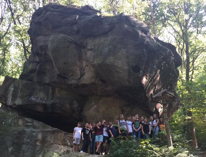 Kolejnym punktem wycieczki była wędrówka po Rezerwacie Skamieniałe Miasto, który jest częścią Ciężkowicko – Rożnowskiego Parku Krajobrazowego. Rezerwat jest przykładem tzw. skalnego miasta – zespołu skał zgrupowanych na niewielkiej powierzchni i tworzących różne kształty. Tutaj każda forma ma swoją nazwę, a bardzo często też wiąże się z nią jakaś legenda, mająca tłumaczyć sposób ich powstawania i taki właśnie wygląd. Są tu więc skały podobne do ludzi, zwierząt, przedmiotów czy miejsc.