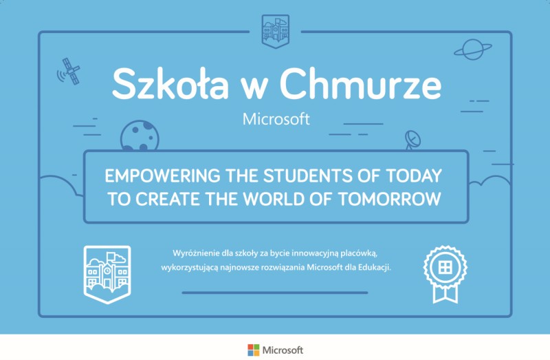 Szkoła wykorzystuje technologię Microsoft do wsparcia zarządzania placówką. Uczniowie, nauczyciele i pracownicy korzystają z usługi Office 365, w szczególności aplikacji Microsoft Teams, OneNote. Udział w programie potwierdzony jest listem gratulacyjnym oraz tabliczką "Szkoła w Chmurze Microsoft", która została zamieszczona przy wejściu głównym do placówki.