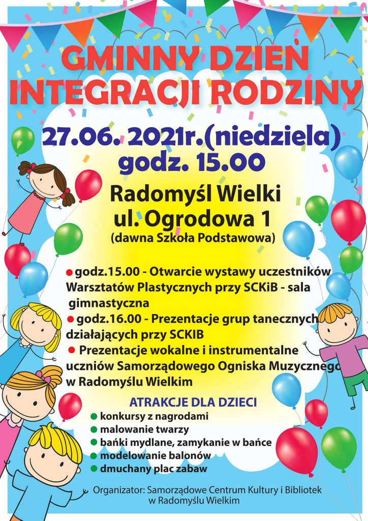 Już w najbliższą niedzielę (27 czerwca) zapraszamy dzieci wraz z rodzicami, babciami i dziadkami na Gminny Dzień Integracji Rodziny.