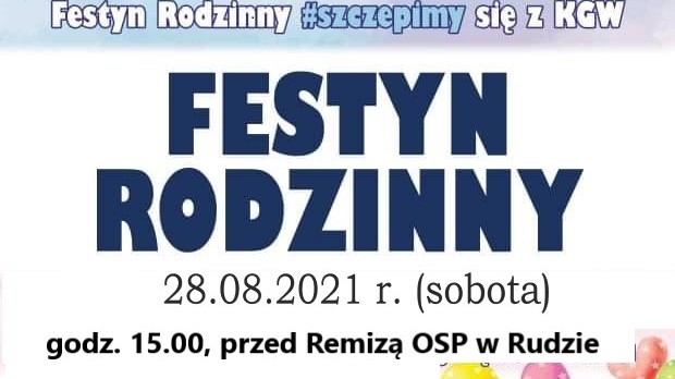 28 sierpnia w Rudzie przed Remizą OSP odbędzie się Festyn Rodzinny w ramach #szczepimysie z KGW.
