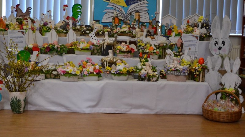 Ozdoby wykonali podopieczni Środowiskowego Domu Samopomocy działającego w ramach Stowarzyszenia „Nasza Gmina”. Oczywiście mogli oni liczyć na pomoc swoich terapeutów. Na stoisku znalazły się między innymi: pisanki i kraszanki wykonane metodami tradycyjnymi, świąteczne stroiki, ozdoby z drewna i ceramiki, wielkanocne baranki, zajączki, kaczuszki czy pisklaki. Zapraszamy do zwiedzania wystawy, która dostępna jest w godzinach pracy biblioteki.