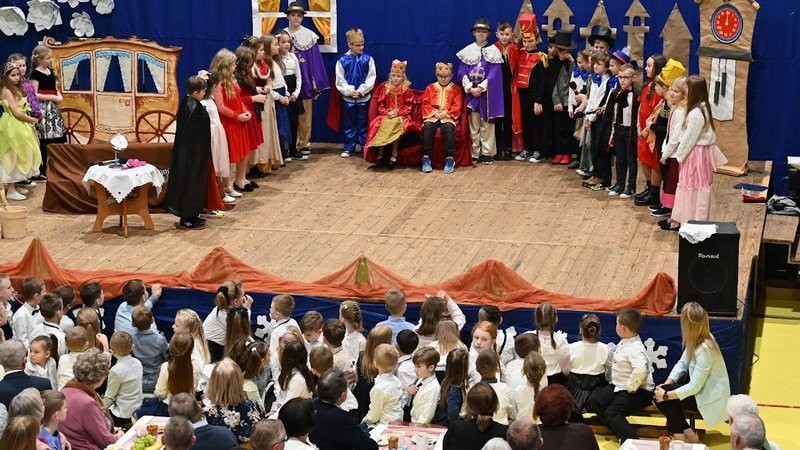 Uczniowie klas trzecich przygotowali krótką scenkę przedstawiająca babcię i dziadzia z wnukami podczas której zaprosili wszystkich do teatru na sztukę pt. "Kopciuszek". Stroje, dekoracje, muzyka, a przede wszystkim zaangażowanie uczniów stworzyły magiczną, baśniową atmosferę.