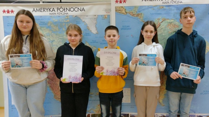 Do konkursu przygotowywali się na kółku geograficznym prowadzonym przez Agnieszkę Snuzik. W konkursie OLIMPUS wzięło udział 9 uczniów z klas VI-VII, a dwoje z nich otrzymało dyplom laureata. Byli to Dominik Ryba i Maia Bartosik-Czaja, którzy uplasowali się na miejscach od 2 do 5 z pośród wszystkich uczestników w Polsce. Pozostali uczniowie otrzymali dyplomy uznania. Byli to Vanessa Cetnar, Krzysztof Siembab, Kinga Mieszkalska, Amelia Ziobroń, Nikola Bugaj, Nikola Małek i Maja Kilian. Serdecznie gratulujemy uczniom.
