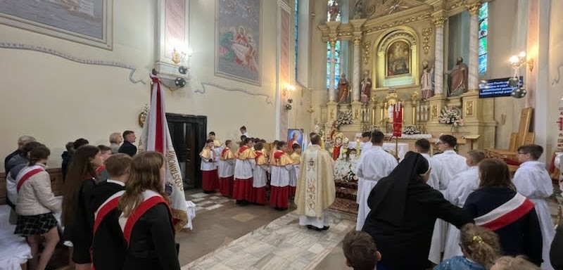 Obchody zainaugurowane zostały Mszą Świętą w kościele parafialnym. Następnie w przemarszu ze sztandarem udaliśmy się do auli szkolnej, gdzie odbyła się dalsza część uroczystości.