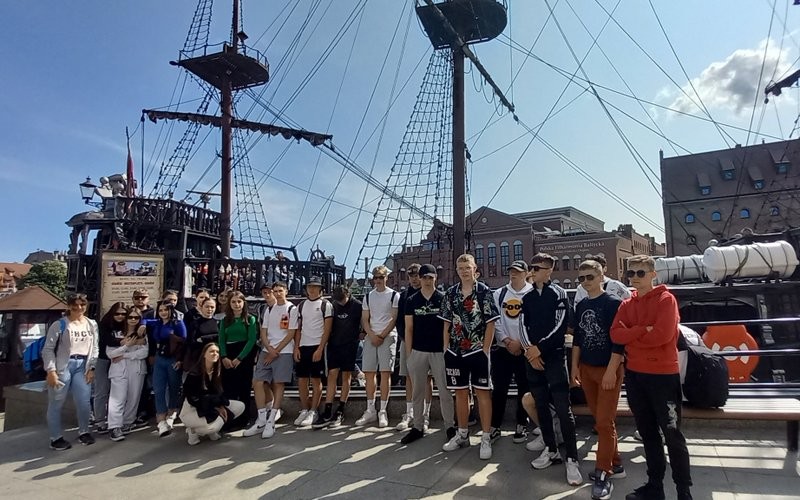 Celem podróży było zwiedzanie Gdyni, Helu i Gdańska wraz z ich najważniejszymi punktami. Jednak nie tylko myśl o zwiedzaniu tych nadmorskich miast dostarczyła emocji, ale również sama podróż, która miała odbyć się pociągiem. I tak w środowy wieczór rozpoczęliśmy swoją przygodę, aby dotrzeć do pierwszego punktu naszej wyprawy, a mianowicie do Gdyni. Po zakwaterowaniu nad samym morzem, rozpoczęliśmy wraz z przewodnikiem spacer po mieście i Skwerze Kościuszki. Następnie zwiedziliśmy m.in. ORP Błyskawica i Dar Pomorza. Gdynia to nie tylko statki, więc wybraliśmy się również na Kamienną Górę, skąd podziwialiśmy panoramę miasta i z zaciekawieniem słuchaliśmy jego historii. Dzień zakończyliśmy na plaży, obserwując zachód słońca, a co niektórzy śmiałkowie zanurzyli stopy w morzu. Drugi dzień to wyprawa na Hel, gdzie również nie brakowało atrakcji. Po zwiedzeniu Fokarium, wysłuchaniu ciekawostek z życia fok i obserwacji ich karmienia, wyruszyliśmy do Muzeum Rybołówstwa. Następnie, aby jak najwięcej zobaczyć, wybraliśmy się w podróż meleksem po półwyspie. Dotarliśmy do najdalej wysuniętego skrawka Polski, przez niektórych nazywanych jej początkiem. Zwiedziliśmy latarnię morską, jedyną w swoim rodzaju, bo ma kształt ośmioboczny, przespacerowaliśmy się promenadą nadmorską oraz wiedzieliśmy umocnienia i baterie altyleryjskie jeszcze z czasów II wojny światowej. Helskie wydmy też były dla nas niecodziennym widokiem i to czyste, szumiące morze, którym wszyscy byli zachwyceni. Nim się obejrzeliśmy, nastał dzień trzeci naszej wyprawy, który przywitaliśmy w Gdańsku. Zwiedzanie rozpoczęliśmy od Muzeum Poczty Polskiej, gdzie pani przewodnik przybliżyła nam jej historię, sięgającą jeszcze do czasów II wojny światowej. Następnie popłynęliśmy Galeonem na Westerplatte do miejsca szczególnie ważnego w polskiej historii. Na trasie naszej wycieczki nie mogło zabraknąć Muzeum Bursztynu, gdzie w nowoczesnej formie przedstawione są dziesiątki eksponatów wykonane ze złota Bałtyku. Następnie przeszliśmy się ulicą Długą, na której nie mogliśmy ominąć Fontanny Neptuna czy nieopodal położonej Bazyliki Mariackiej. Na koniec pełnego atrakcji dnia wybraliśmy się do Stoczni Gdańskiej na Plac Solidarności, gdzie młodzież mogła – poza wysłuchaniem jej historii, przejść przez słynną Bramę nr 2 czy usiąść w tych samych ławach, co stoczniowcy w czasie strajku.