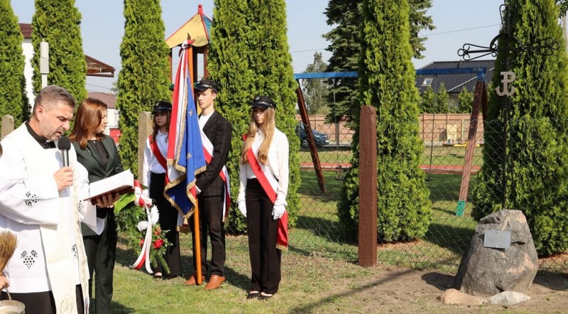 Odsłonięcia dokonali: burmistrz Agnieszka Machnik, dr Andrzej Przybyszewski, radny Marian Dziekan, sołtys Agelika Garbicz, Sabina Żala i Ireneusz Wołoszyn. Poświęcenia dokonał proboszcz Parafii ks. Piotr Golemo.