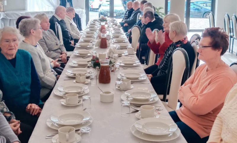 Oprócz gospodarzy na przybyłych czekali przedstawiciele gminy z zastępcą burmistrza Zdzisławem Lasotą, kierownictwem GOPS (Bożena Zaskalska i Marta Rzeszutek) oraz ks. proboszcz ze Zgórska Wiesław Nowak. Było jak na wieczerzę wigilijną przystało; czytanie Ewangelii, modlitwa, życzenia, łamanie opłatkiem, śpiewanie kolęd i potrawy wigilijne, m.in. pierogi, barszcz biały, czerwony barszcz z uszkami, kapusta z grzybami, groch, ryba czy kompot z suszu.