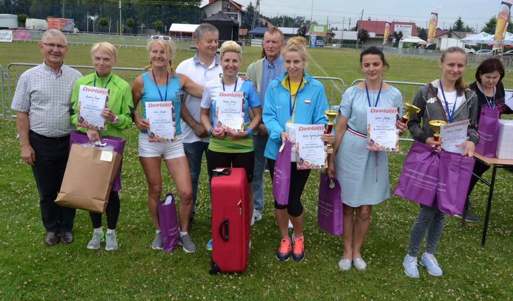 Wśród kobiet wygrała Angelika Augustyn, siostra chodziarza Rafała Augustyna, olimpijczyka z Londynu, Pekinu i Rio de Janeiro. Czas zwyciężczyni to 44 minuty i 14 sekund. Druga ze stratą 29 sekund była Joanna Nowak z Tarnowa, a trzecia Monika Rychlak-Bożek ze Stalowej Woli, która do triumfatorki straciła pół minuty. Kolejne miejsca zajęły Patrycja Osuch (Dębica), Anna Kusion (Tarnów) i Barbara Paczos (Mielec). Najlepszą biegaczką reprezentującą radomyską gminę okazała się ósma Lucyna Turczyn.