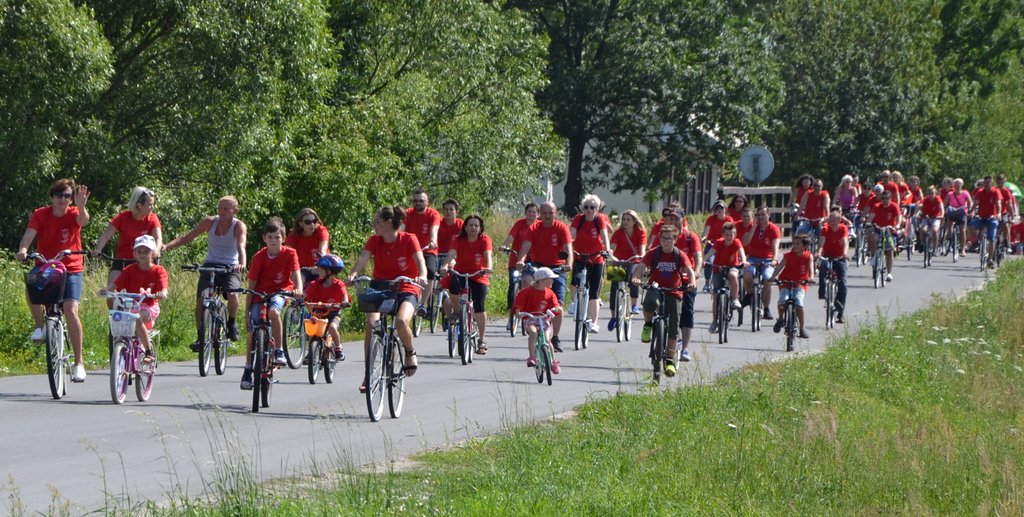 W sobotnie popołudnie, 7 lipca, przed remizą OSP Zgórsko zgromadzili się amatorzy dwóch kółek. Byli dorośli, młodzież, dzieci i seniorzy, w sumie około 400 rowerzystów. W gronie uczestników rajdu nie zabrakło także włodarzy radomyskiej gminy: burmistrza Józefa Rybińskiego, wiceburmistrza Stanisława Lonczaka i przewodniczącego Rady Miejskiej Jana Miękosia. Rowerzyści w czerwonych koszulkach, eskortowani przez funkcjonariuszy mieleckiej drogówki, utworzyli kilkusetmetrowy peleton, który przemierzając drogami m.in. Zgórska, Podborza po pokonaniu około 16 kilometrów dotarł na stadion w Zgórsku. Tam na wszystkich czekały już też kiełbaski z grilla i napoje na ochłodę. To nie wszystko. Po odpoczynku przyszedł czas na rodzinny piknik, podczas którego oficjalnie oddano do użytku boisko wielofunkcyjne z siłownią zewnętrzną. Przybyli na imprezę mogli bawić także podczas koncertu Mateusza Mijala i zabawy tanecznej z zespołem No Name.