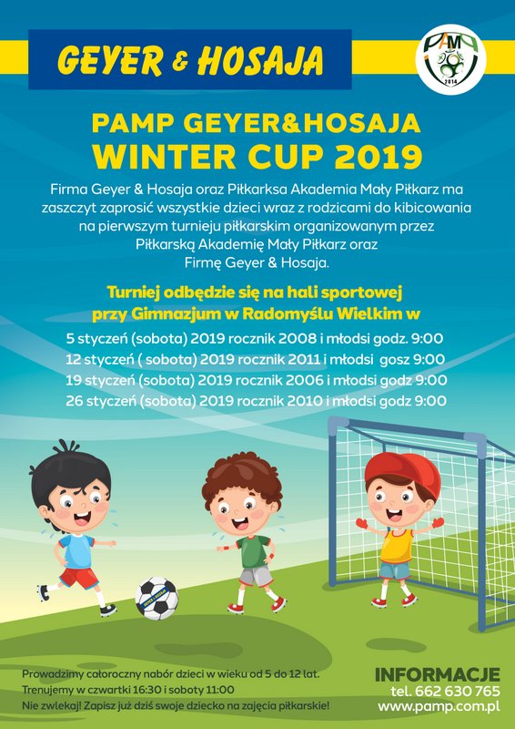 19 styczeń - turniej rocznika 2006: PAMP I, PAMP II, Stal Rzeszów, Grunwald Budziwój, UKS SMS Stal Mielec, Czarnovia Czarna, SP Football Factory Trześń, Sparta Chorzelów