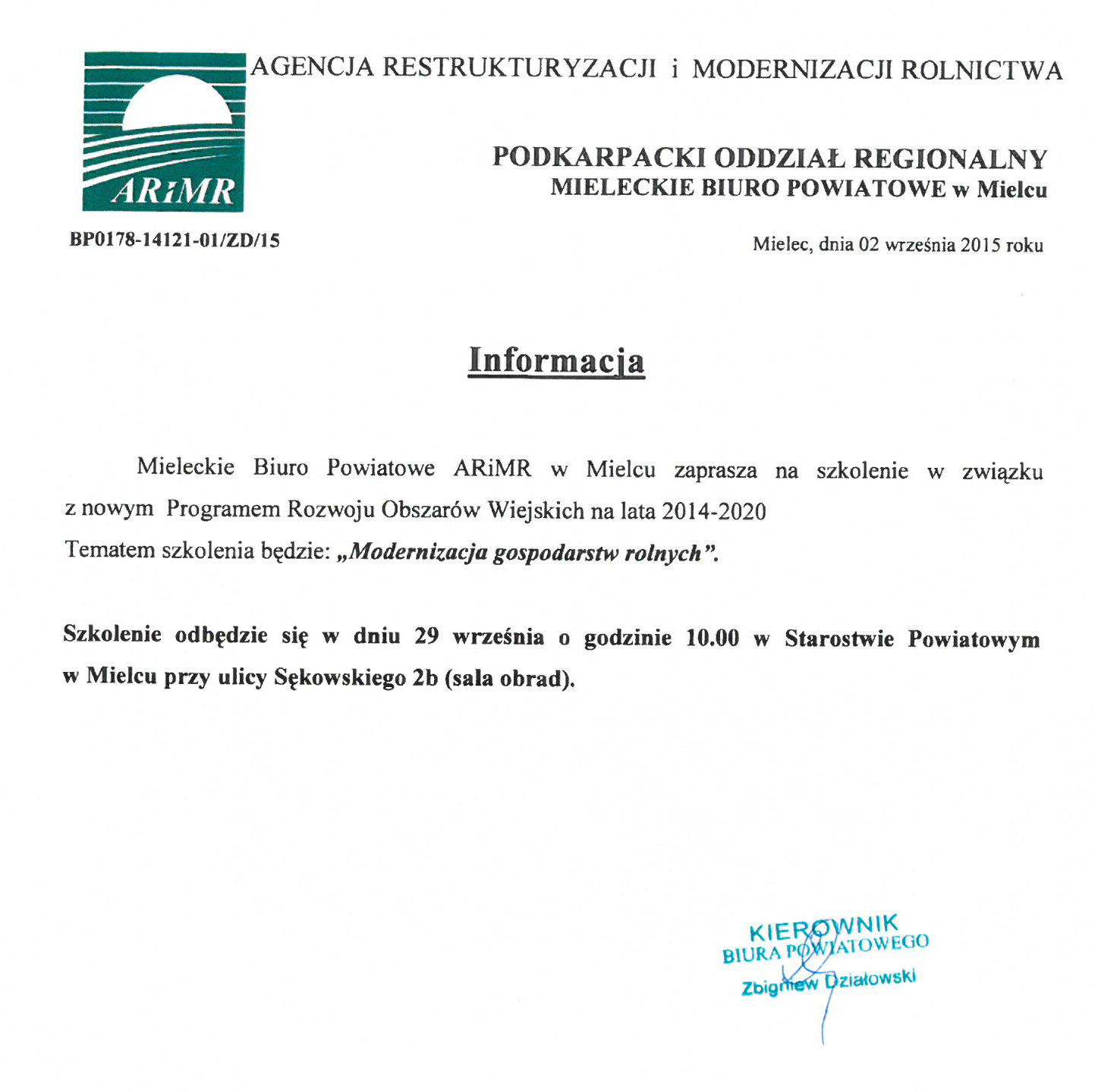 Informacja Agencji Restrukturyzacji i Modernizacji Rolnictwa