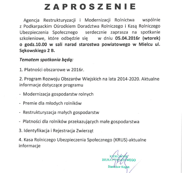 We wtorek o godz. 10 w sali narad Starostwa Powiatowego Mielcu (ul. Sekowskiego 2b) odbędzie się spotkanie informacyjne dla rolników m.in. z zakresu pozyskania środków UE.