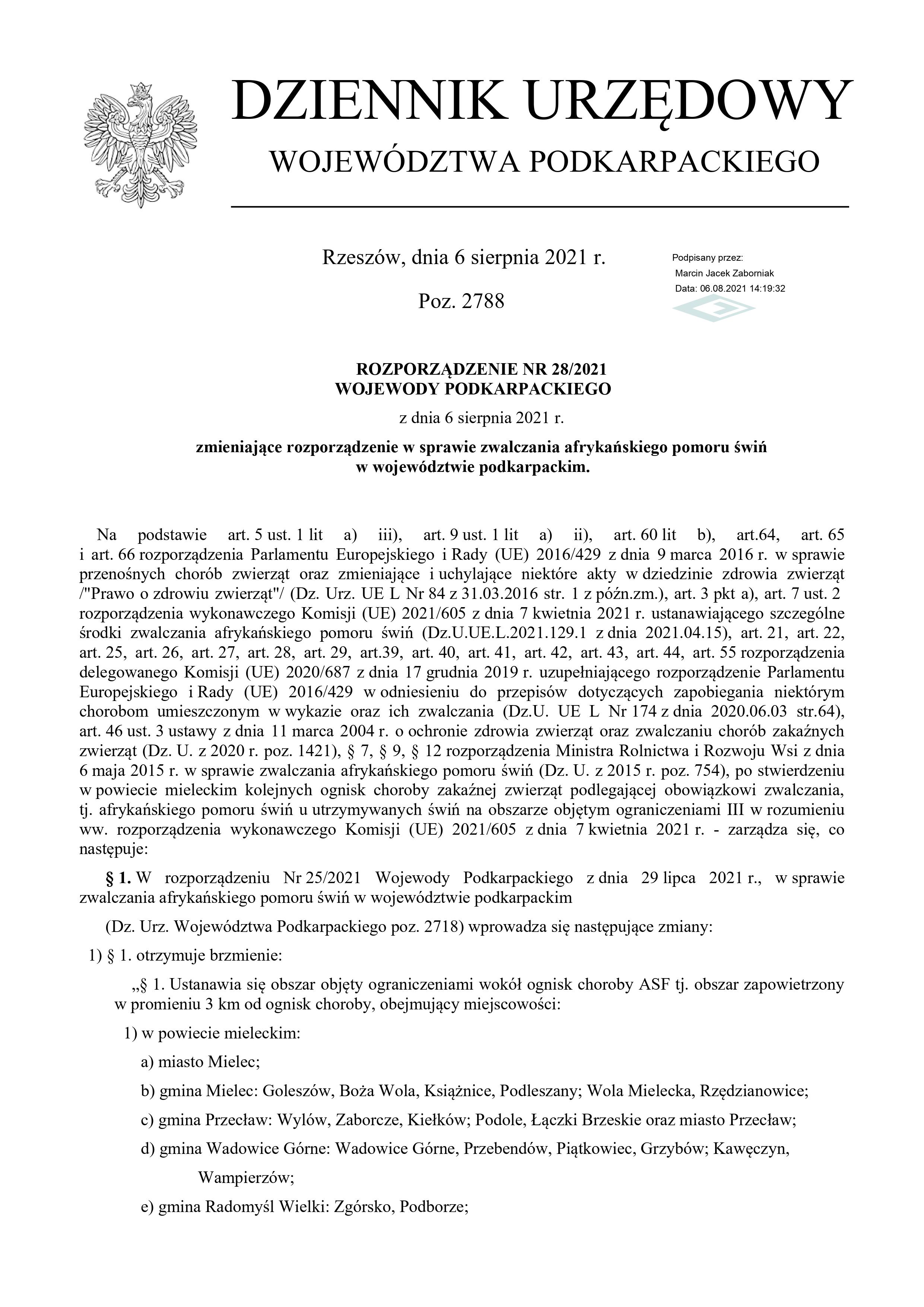 Rozporządzenie nr 28/2021 Wojewody Podkarpackiego