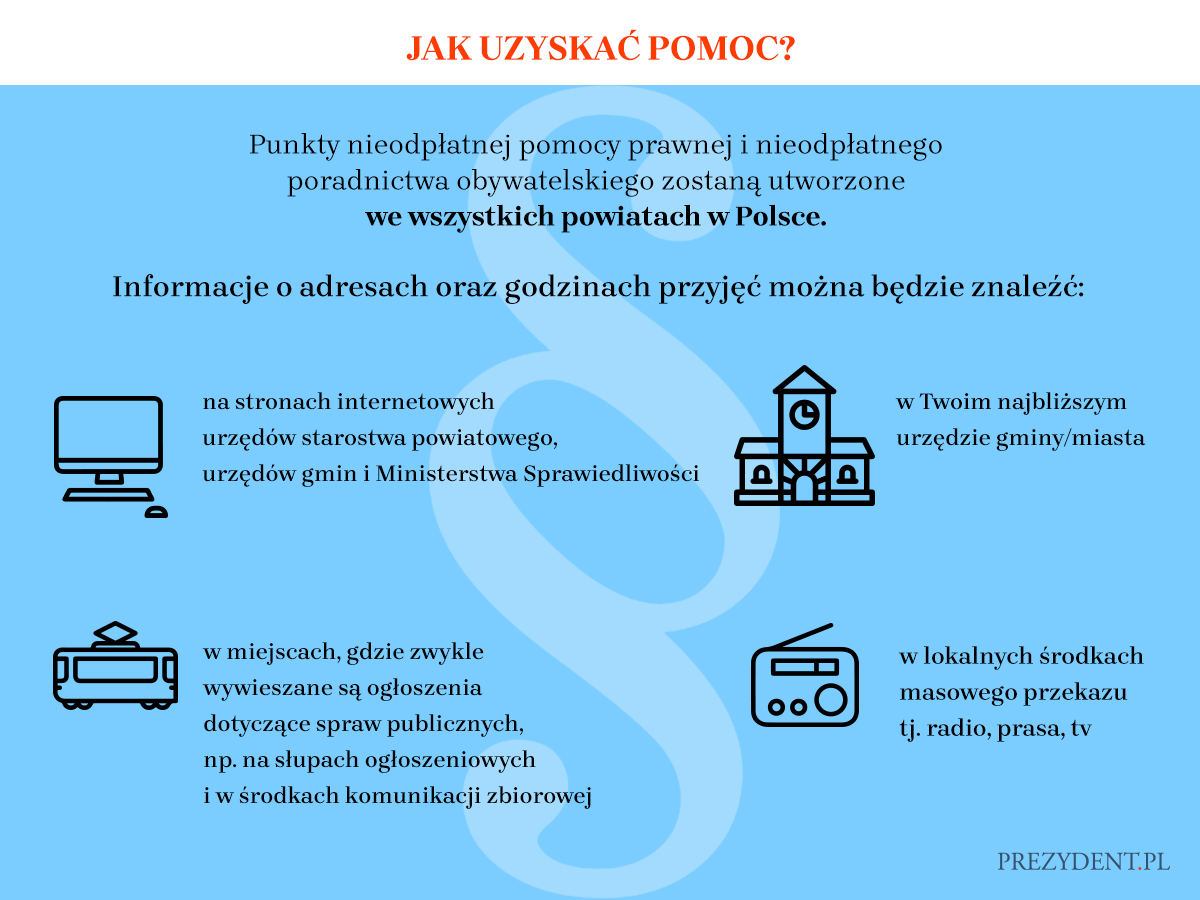 Punkt nieodpłatnej pomocy prawnej ulokowany będzie przy ul. Rynek 1, 39-310 Radomyśl Wielki.