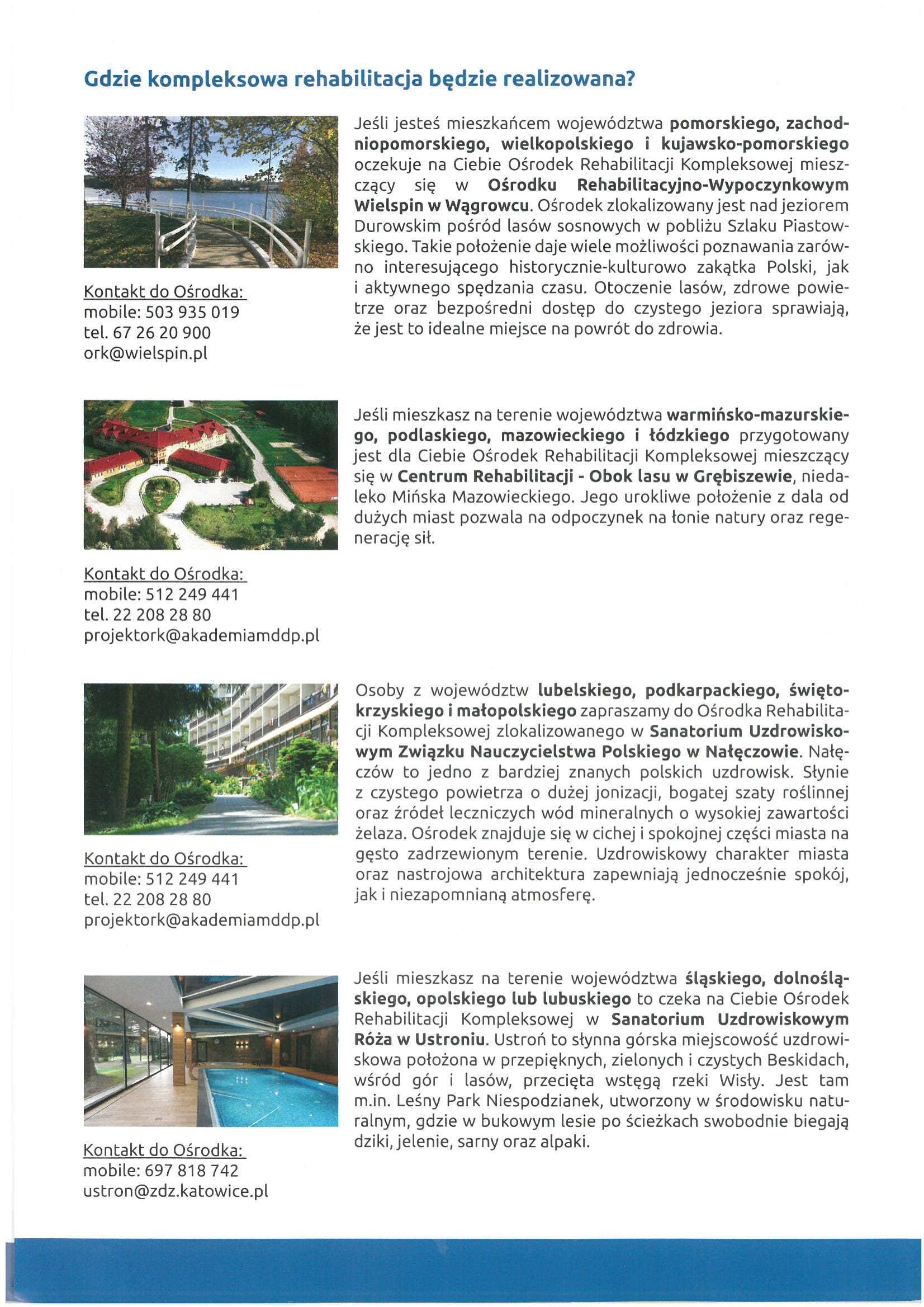 Jeśli osoba zostanie zakwalifikowana do projektu i jest mieszkańcem województwa podkarpackiego zostanie skierowana do Ośrodka Rehabilitacji Kompleksowej w Nałęczowie. Tam, dla każdego z uczestników, zostanie zostaje przygotowany indywidualny plan działania.