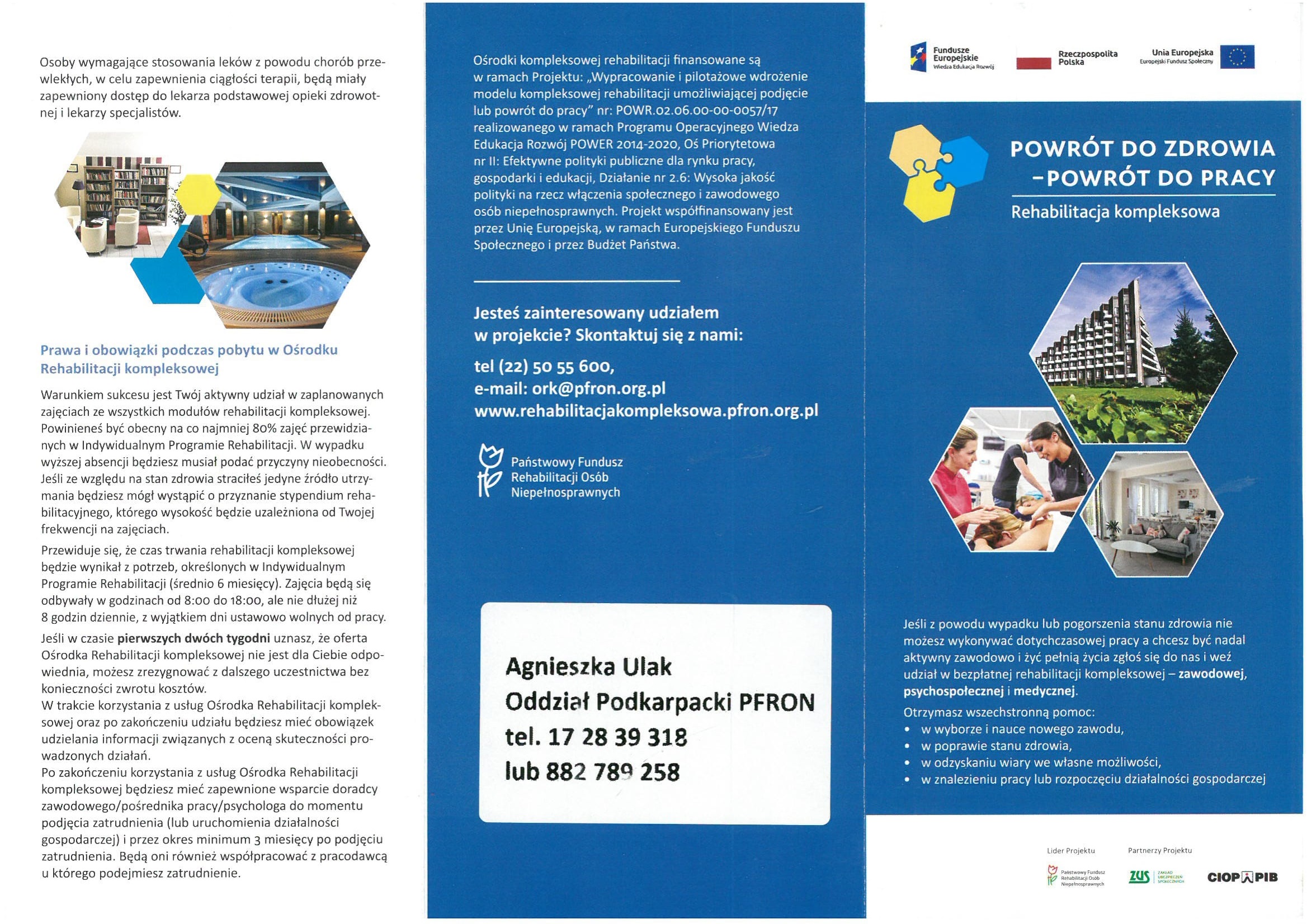 Oddział Podkarpacki PFRON tel. 17 28 39 318 lub 882 789 258 – osoba do kontaktu P. Agnieszka Ulak