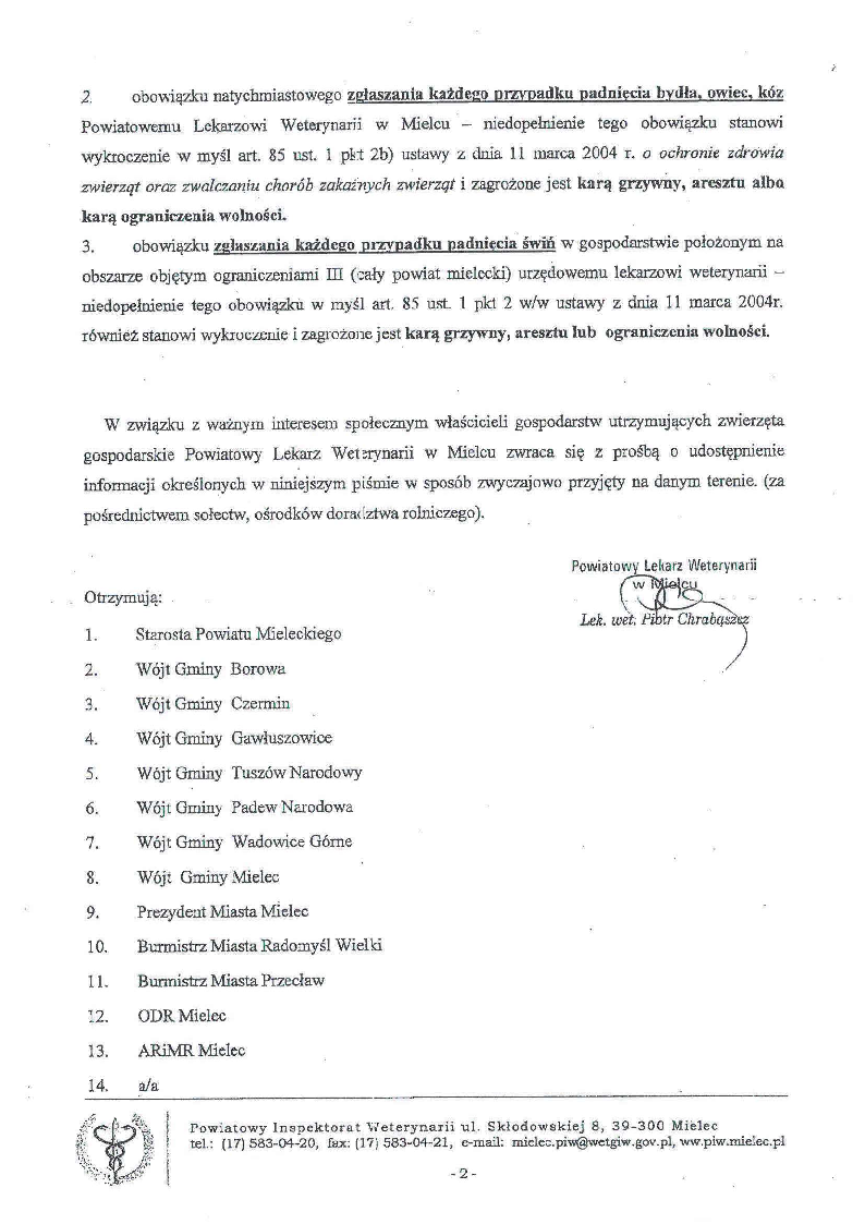 Komunikat Powiatowego Lekarza Weterynarii w Mielcu