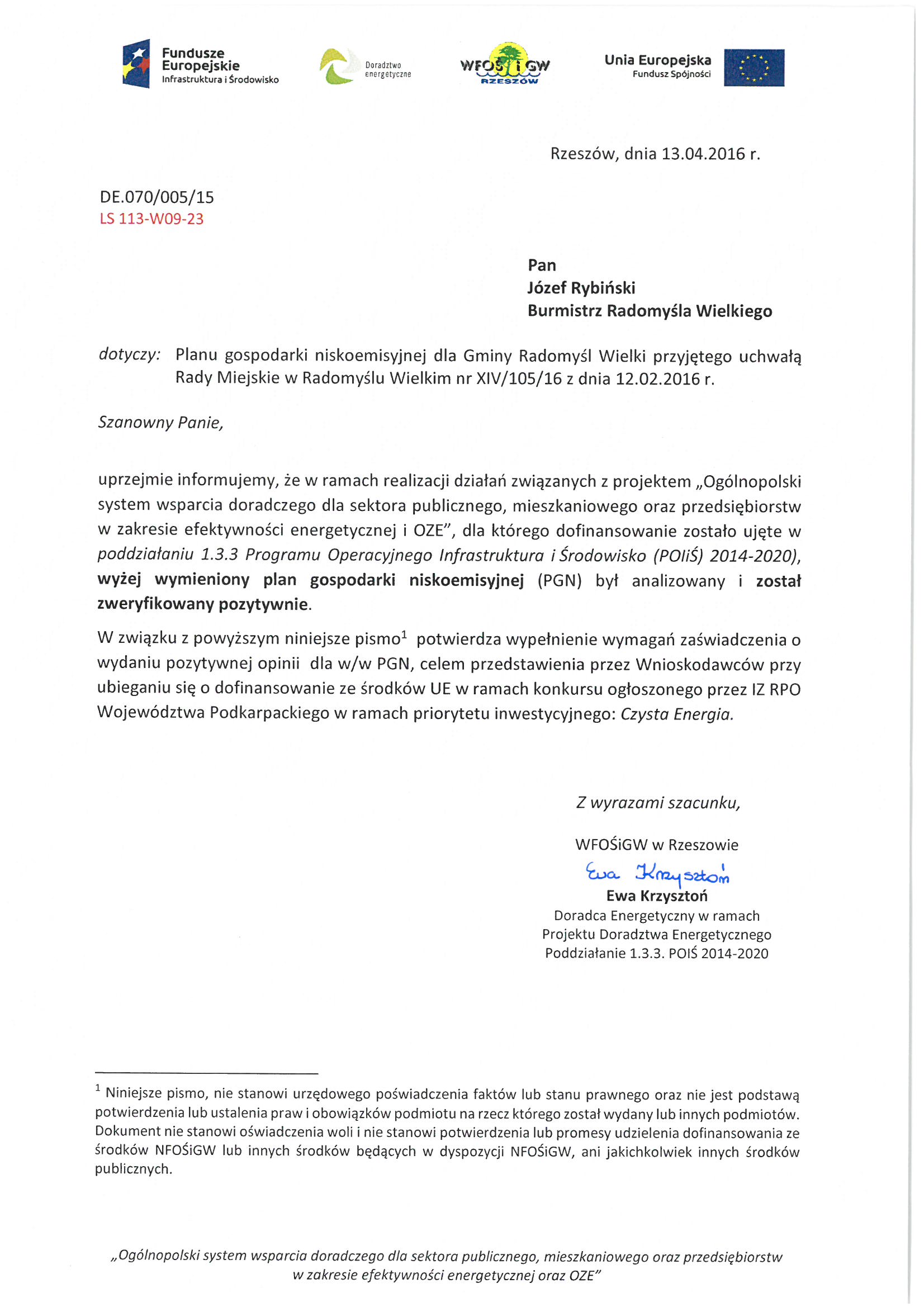 Zaświadczenie Wojewódzkiego Funduszu Ochrony Środowiska i Gospodarki Wodnej w Rzeszowie