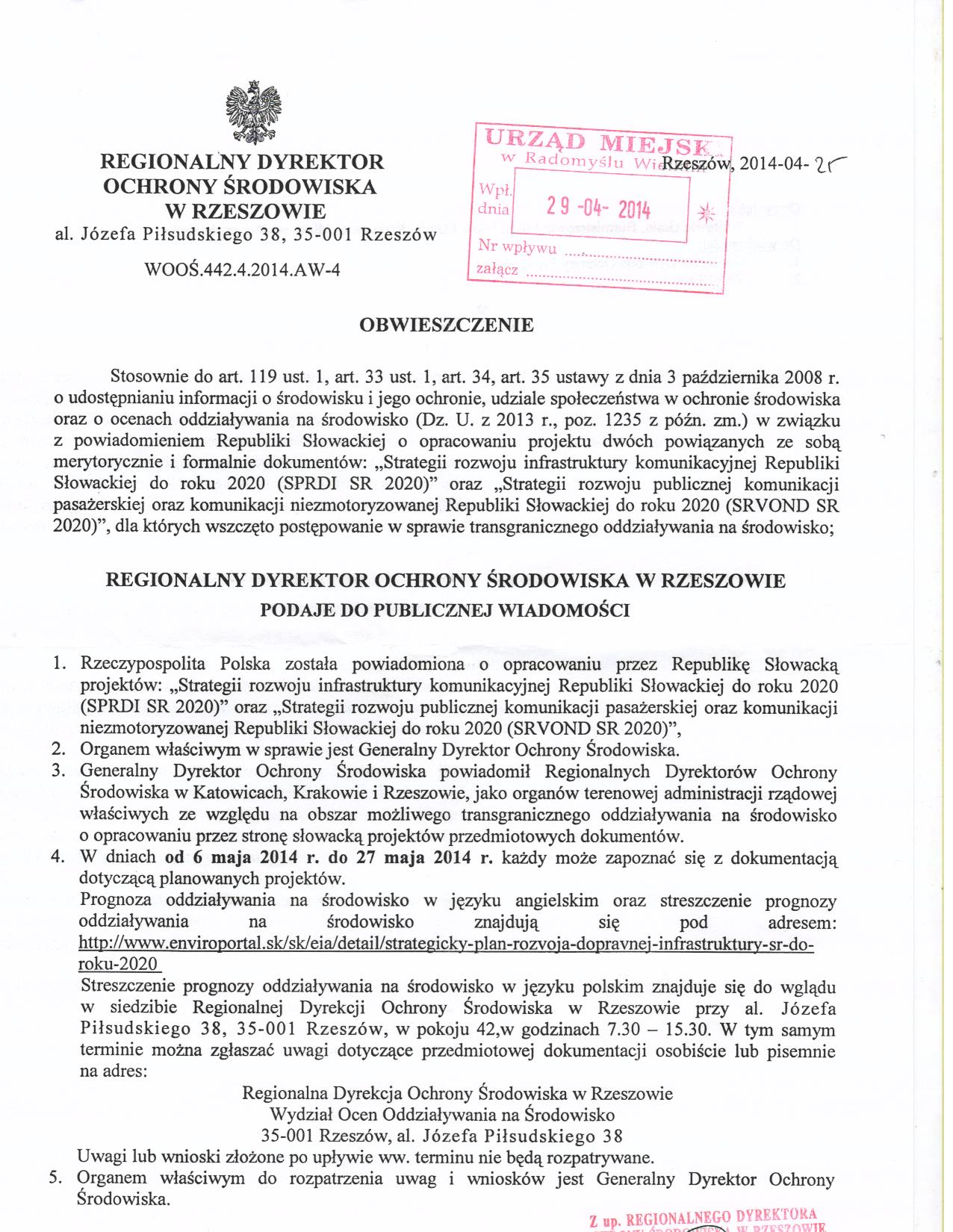 Obwieszczenie Regionalnego Dyrektora Ochrony Środowiska w Rzeszowie