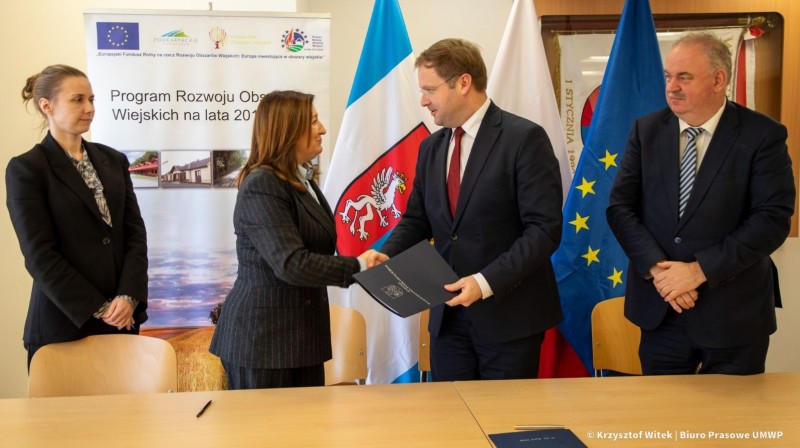 W siedzibie Urzędu Marszałkowskiego Województwa Podkarpackiego burmistrz Agnieszka Machnik i skarbnik Agnieszka Kopera podpisały umowę o przyznanie pomocy na realizację zadania z zakresu „Gospodarka wodno-ściekowa” w ramach Programu Rozwoju Obszarów Wiejskich na lata 2014–2020.