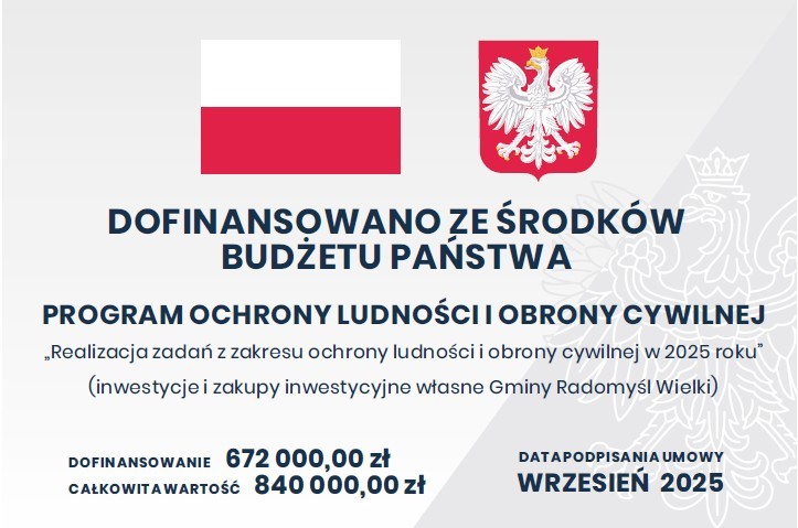 Środki zostaną przeznaczone na sfinansowanie projektu pn. „Realizacja zadań z zakresu ochrony ludności i obrony cywilnej w 2025 roku”. Wysokość dofinansowania 672 000 zł, całkowita wartość projektu 840 000 zł.